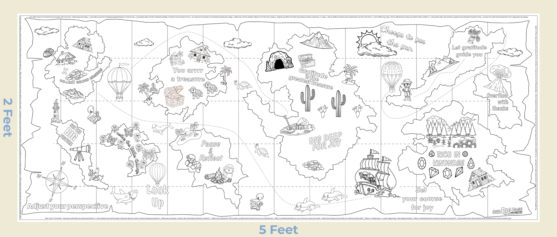 True treasure isn't about gold coins; it's about finding the golden moments in every day. "The Gratitude Map" giant coloring sheet turns the practice of gratitude into a thrilling adventure, helping children (and adults) discover that happiness is something you can map out.