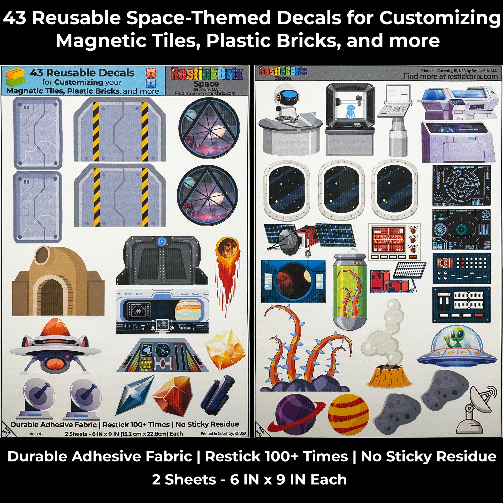 Space: Reusable Decals for Customizing Magnetic Tiles, Plastic Bricks, and more